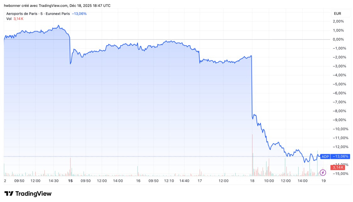 Ainsi, l’action d’ADP chute de 13 %, au milieu de décembre, après le rejet des hausses de tarifs par le gouvernement.
